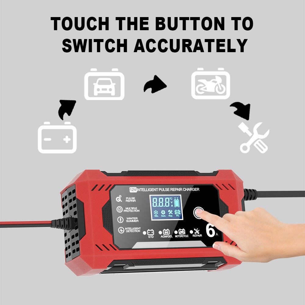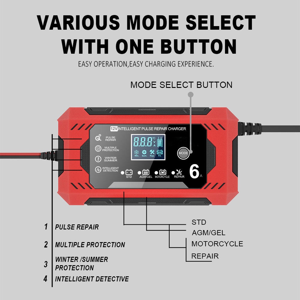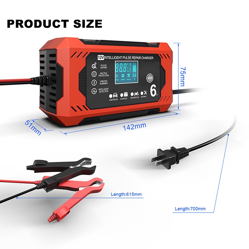 12V6A intelligent pulse charger for car, motorcycle and AGM battery