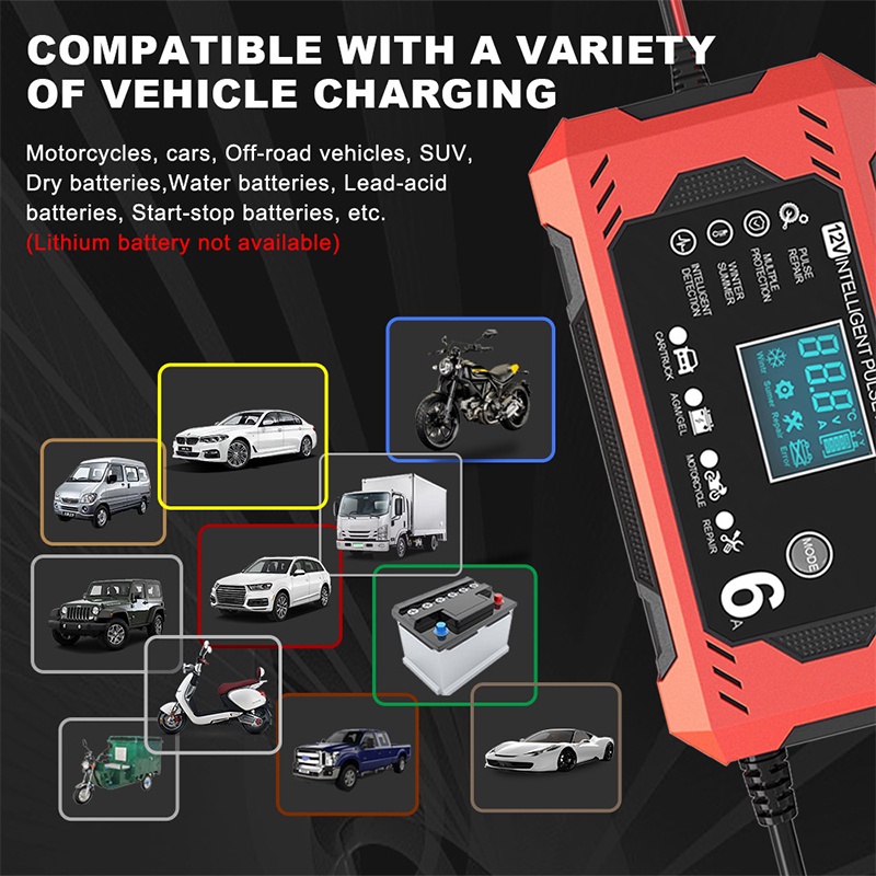 The 12V 6A Intelligent Pulse Repair Charger is a high-performance maintenance tool designed to charge, protect, and revive various 12V lead-acid batteries for cars, motorcycles, and AGMs. 🏎️🏍️